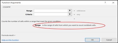 In the COUNTIF formula (and some others), it’s perfectly clear that we should enter a range of cells: