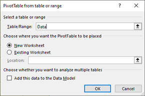 Select ‘New Worksheet’ for where the Pivot Table should be placed, then press OK. A new sheet should appear with the empty Pivot Table on the left-hand side of the page, and the Pivot Table field list on the right: