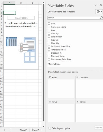 Pivot Tables can also be stored in the same sheets, or separate sheets, or even in a whole different file to the raw data. This gives huge flexibility if you want to send the Pivot Table Report, but not the underlying raw data with it (especially if the file is big).