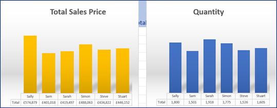 This is a perfect dashboard now, clearly illustrating the Sales Value & Quantity by Sales Person.