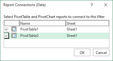 Just like Timelines, Slicers can also be connected to multiple Pivot Tables by selecting the relevant Pivot Tables in ‘Report Connections.’